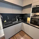 Ein Herd und ein Geschirrspüler sind in einer voll ausgestatteten Küche vorhanden. Die Unterkunft ist in unmittelbarer Nähe von der nächstgelegenen Bushaltestelle Tsentralni Hali.